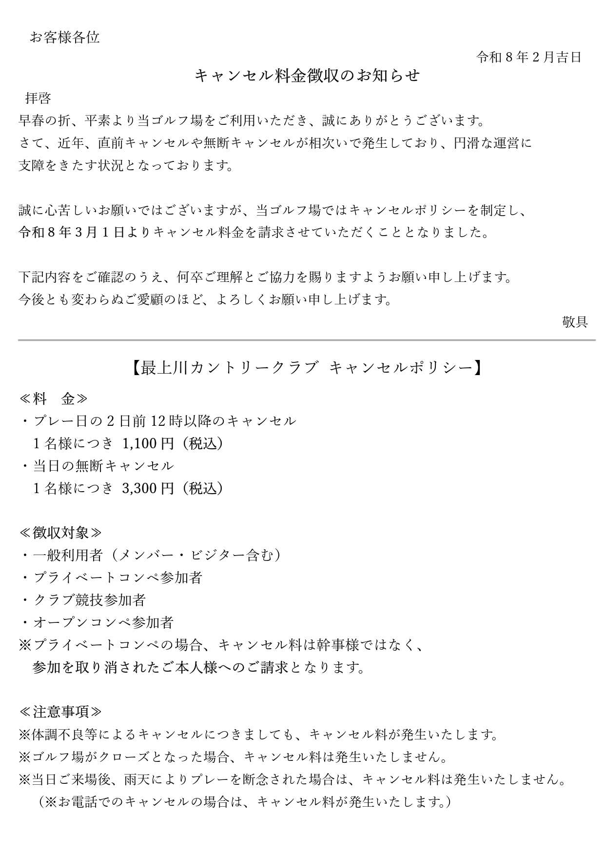【重要】キャンセルルール導入のお知らせ